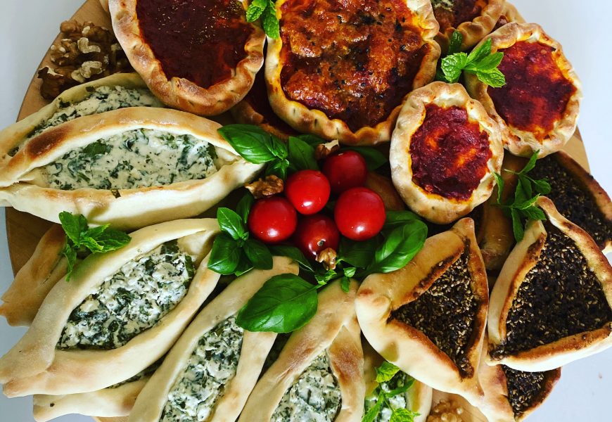 حسب الرغبة هنا صنعت البعض من الجبنة وايضا الزيت والزعتر وايضا من الطماطم والبعض من الدبس الفلفلة نعمل العجينة على الاشكال كما في الصورة .